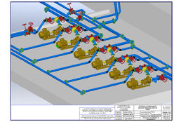 Process and utility pipe routing is a key step in the creative design of a process plant system. 3D pipe modeling is linked to P&ID drawings, which allows for better managed piping layouts. Piping is specification driven, allowing for the creation of isometric and orthographic documentation including automatic bills of materials. An example of a 2D pipe section is shown below.